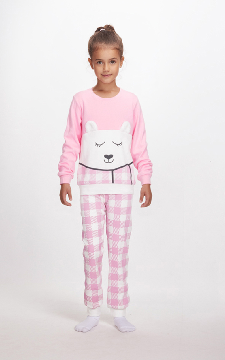 Κοριτσίστικη βελούδινη πιτζάμα της εταιρείας Dreams Με όμορφο σχέδιο μεταξοτυπίας που μπορεί και να σιδερωθεί Παντελόνι με λάστιχο στο τελείωμα Σε κανονική άνετη γραμμή.