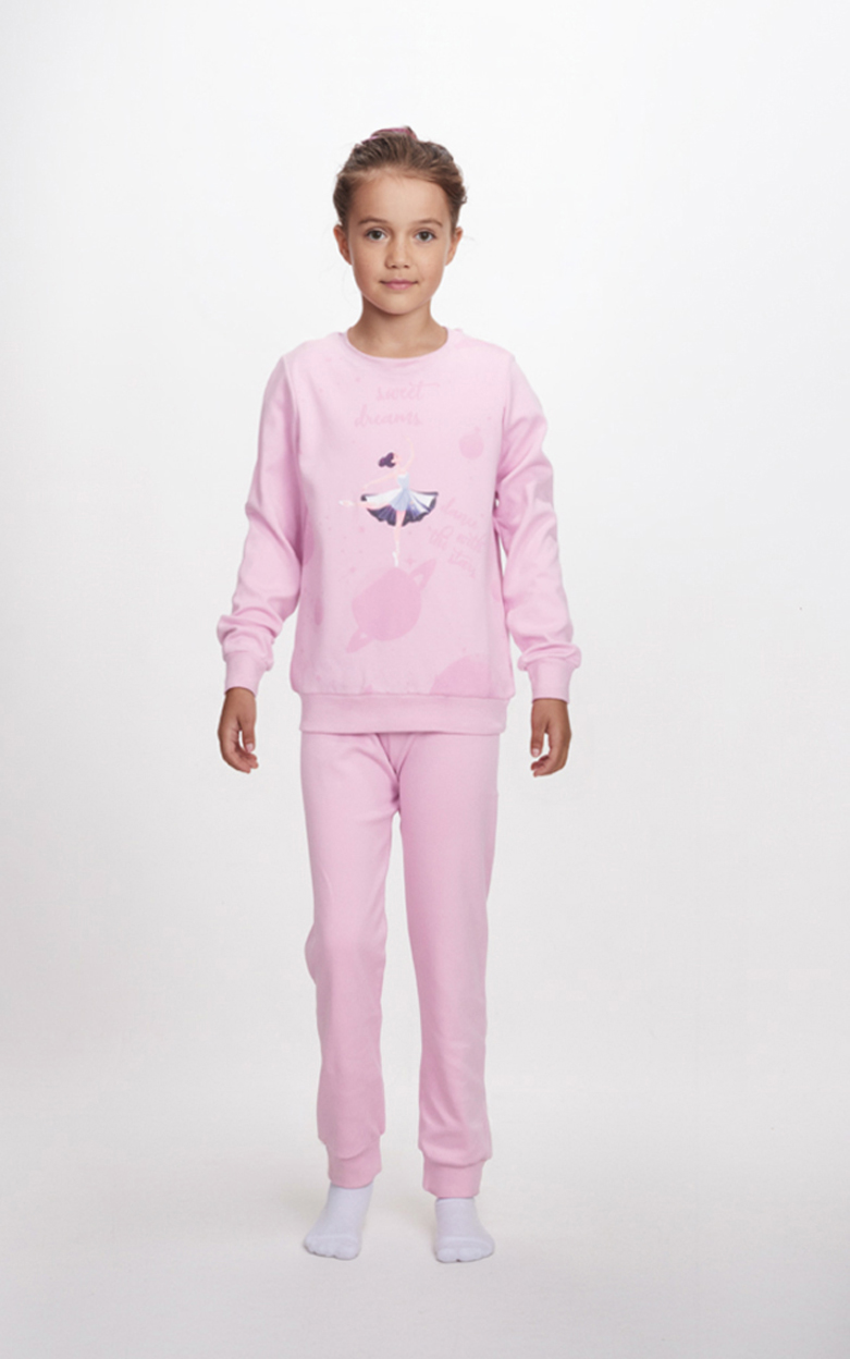 Κοριτσίστικη βαμβακερή πιτζάμα της εταιρείας Dreams Με όμορφο σχέδιο μεταξοτυπίας που μπορεί και να σιδερωθεί Παντελόνι με λάστιχο στο τελείωμα Σε κανονική άνετη γραμμή.