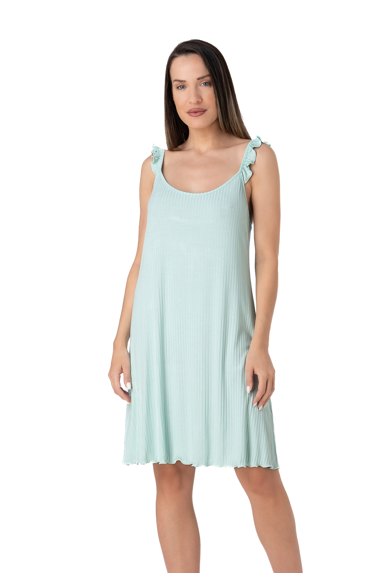 Καλοκαιρινή πιτζάμα της εταιρείας Relax Σε άνετη γραμμή με βολάν στο πάνω μέρος και πατιλέτα με 3 κουμπάκια Σε πολύ όμορφο φυστίκι εμπριμέ χρώμα, σετ με ροζ Κάπριο