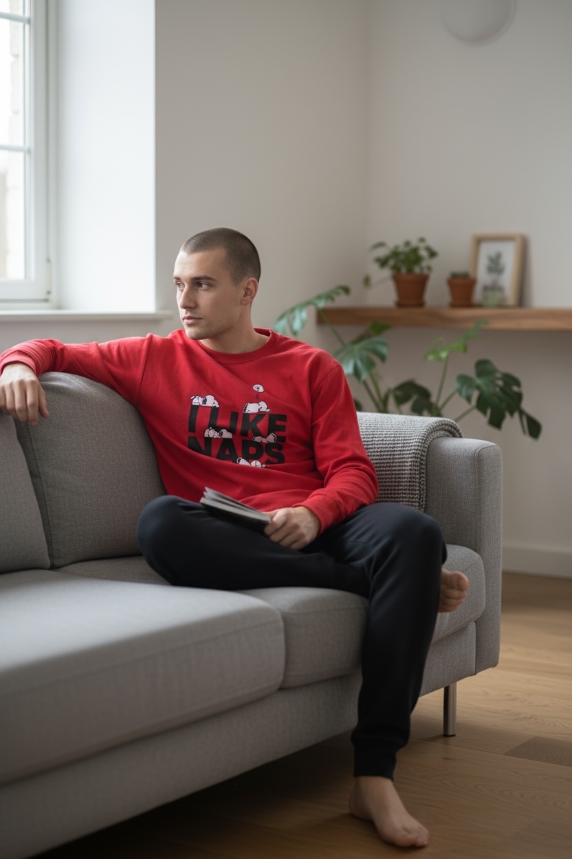 Ανδρική πιτζάμα με σχέδιο στην μπλούζα