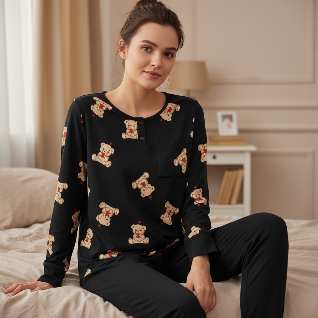 Με σχέδιο από αρκουδάκια στην μπλούζα με μονόχρωμο παντελόνι