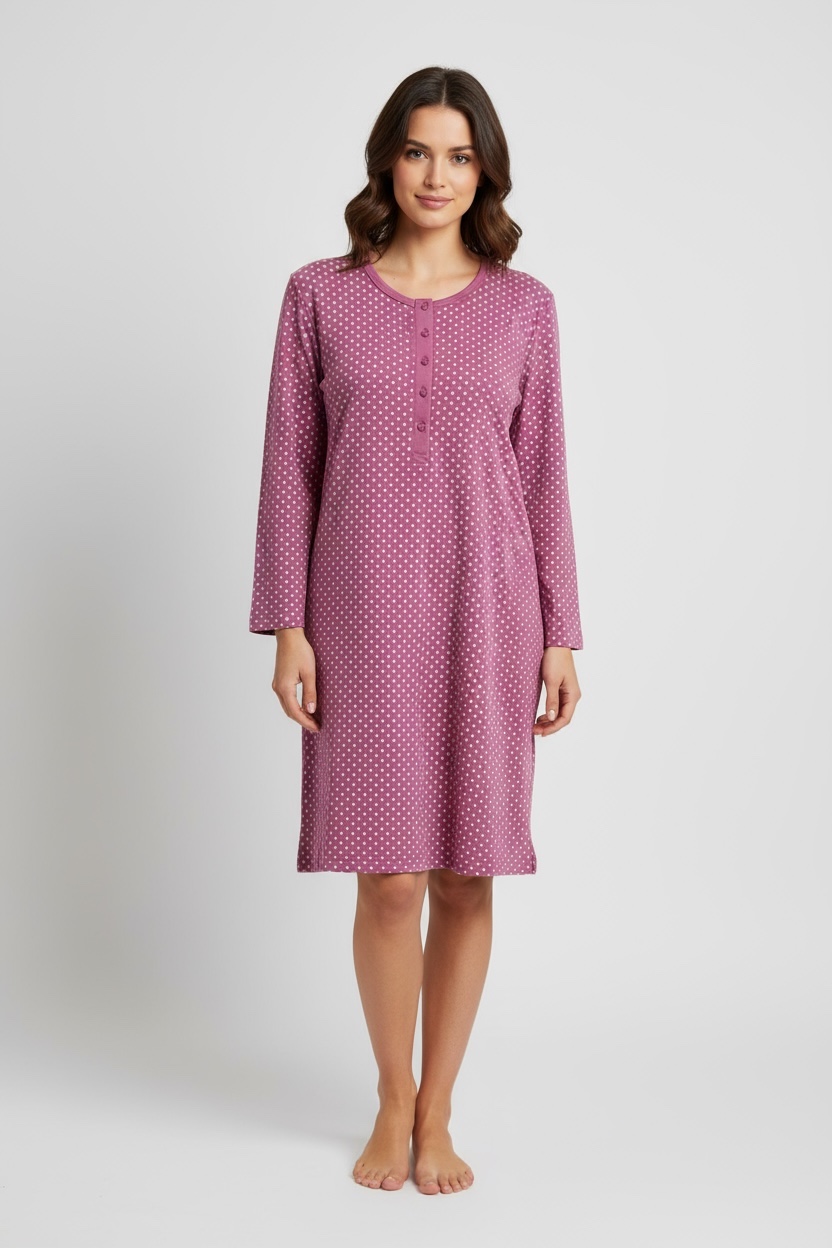 Βαμβακερό νυχτικό πουά με πατιλέτα στο στήθος