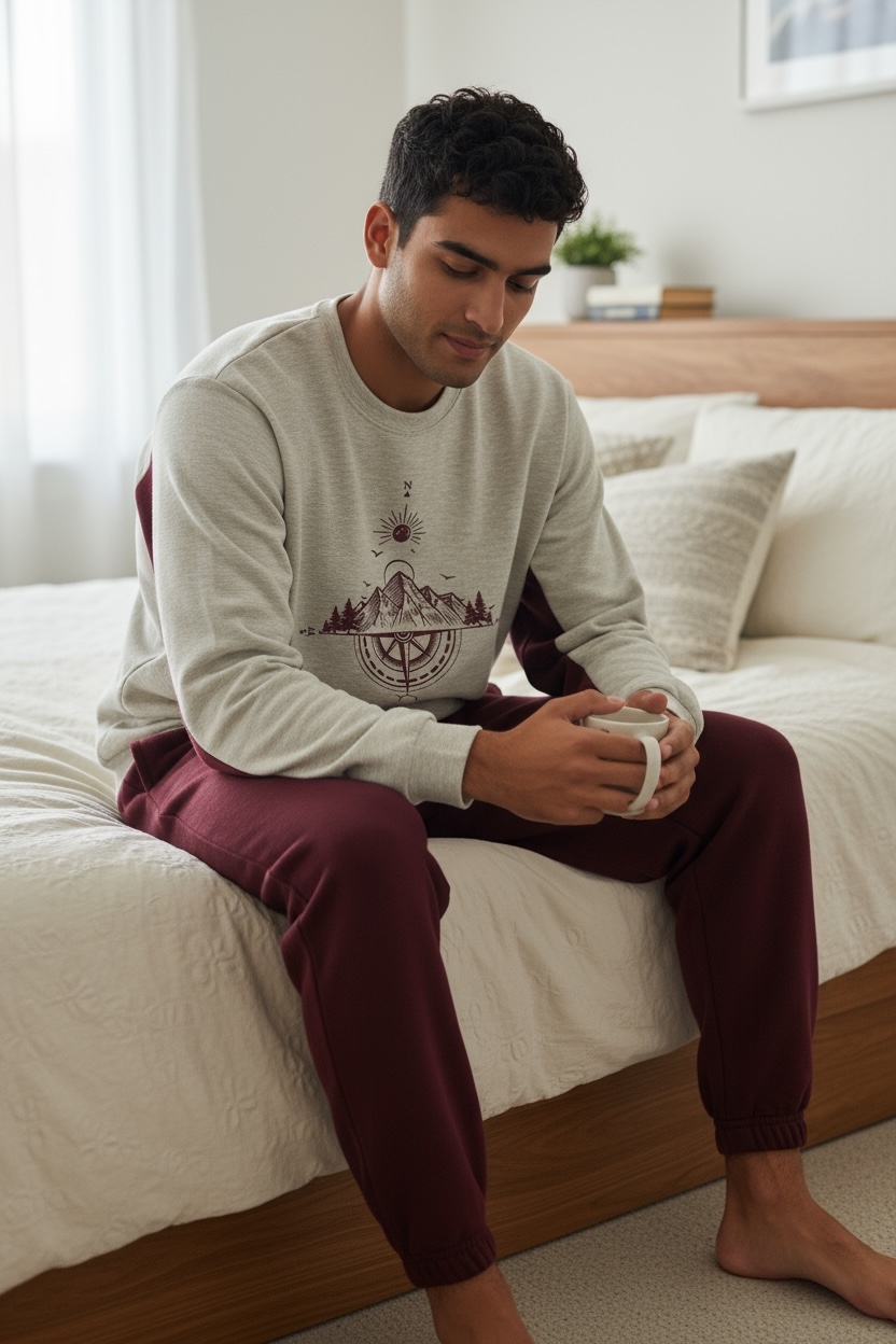 Ανδρική πιτζάμα με σχέδιο στην μπλούζα Έχει μαλακό λάστιχο στο τελείωμα του παντελονιού και στα μανίκια Από πολύ απαλό βαμβακερό ύφασμα.