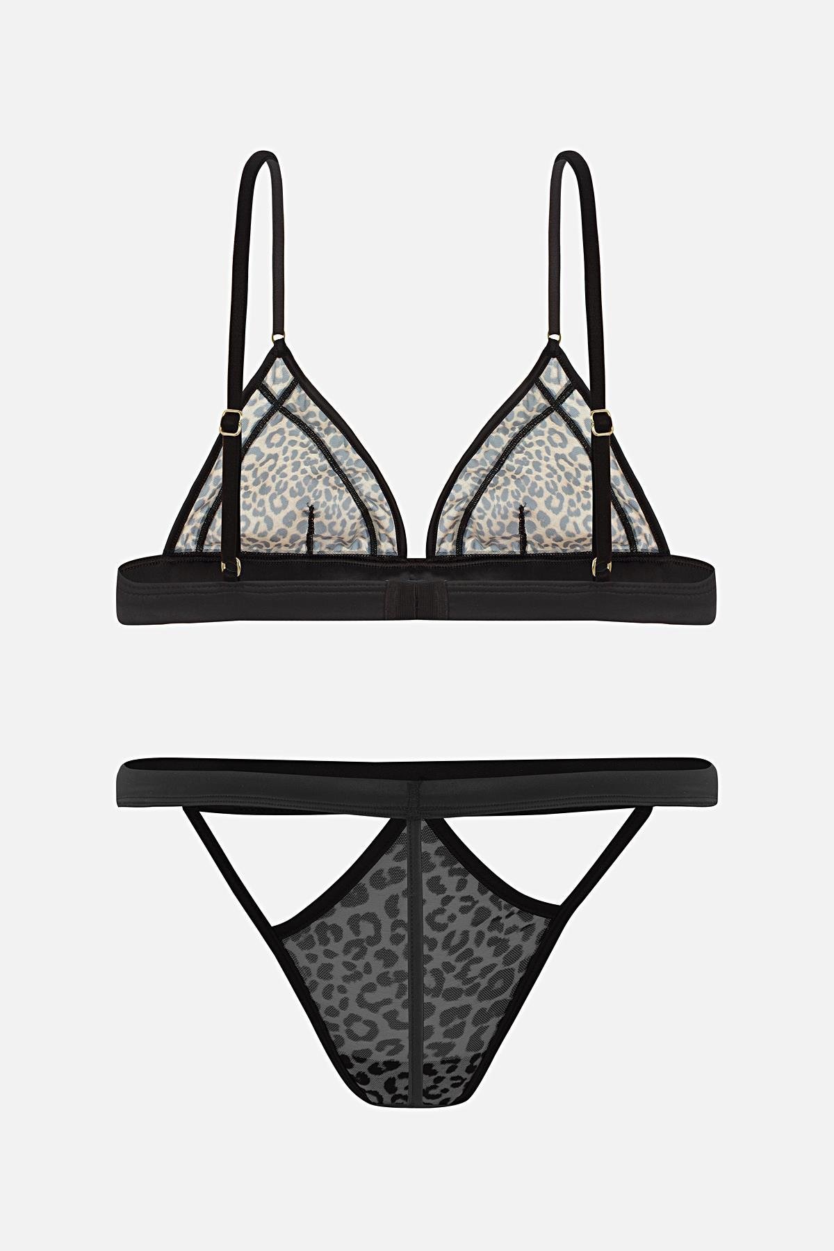 Animal print σετ εσορουχων με ενα όμορφο bralette με κουμπωμα πισω και ρυθμιστες στις τιρλάντες.