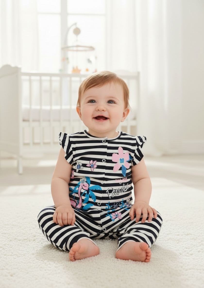 Φορμάκι βρεφικό 100% βαμβακερό Φορμάκι σε στυλ σαλοπέτας με κοντομάνικο μπλουζάκι