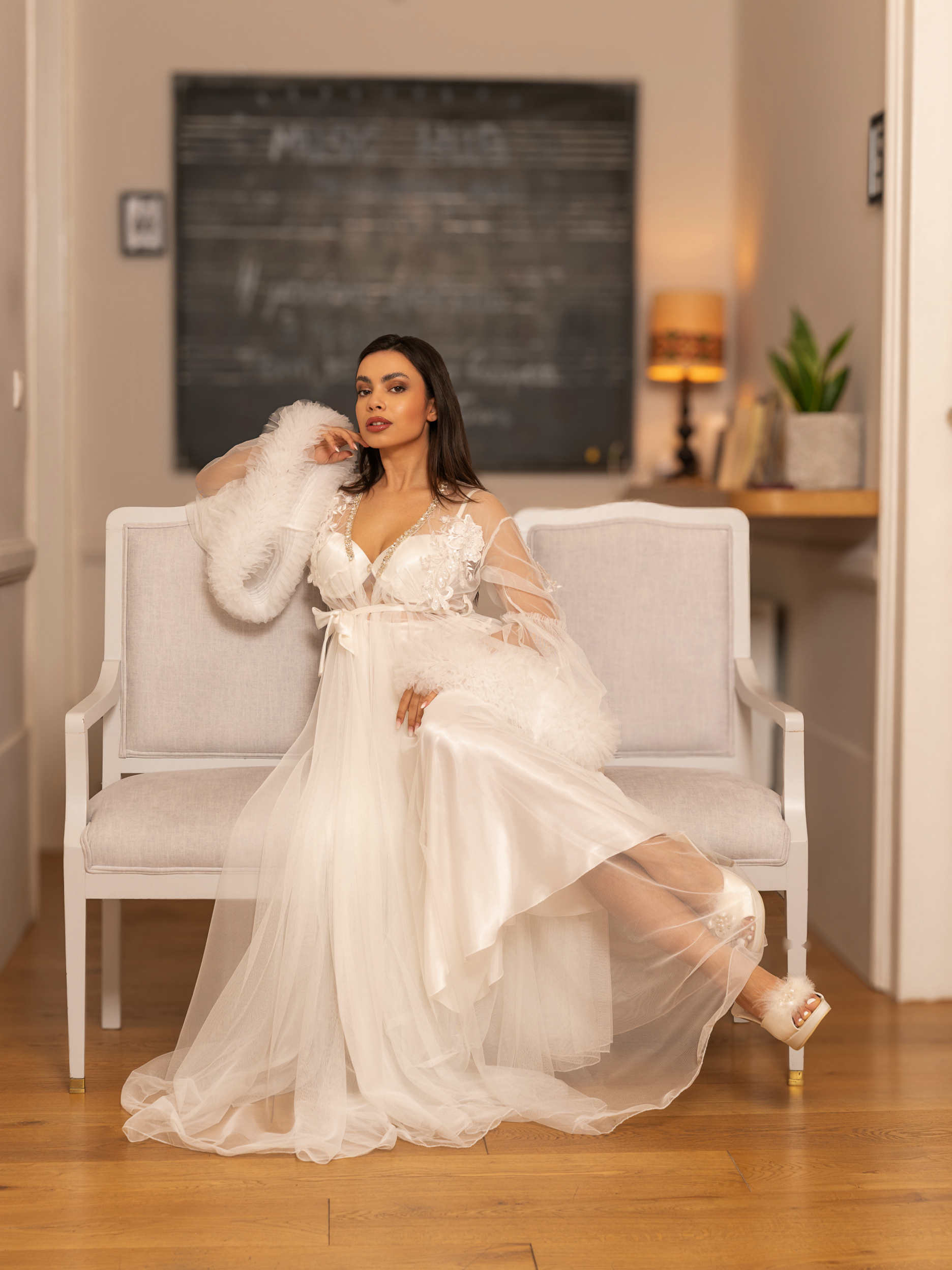 Μακρύ νυφικό σετ προετοιμασίας.