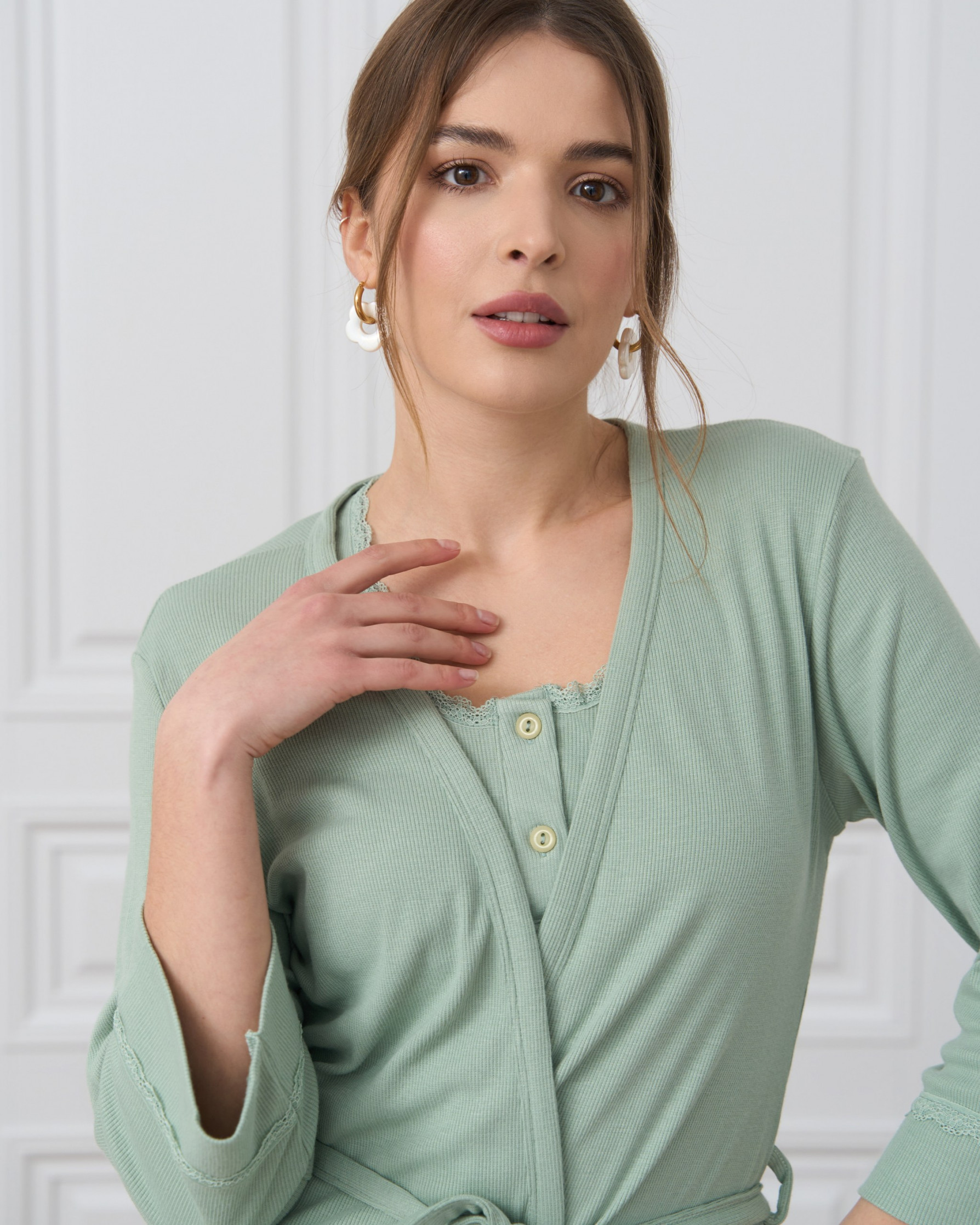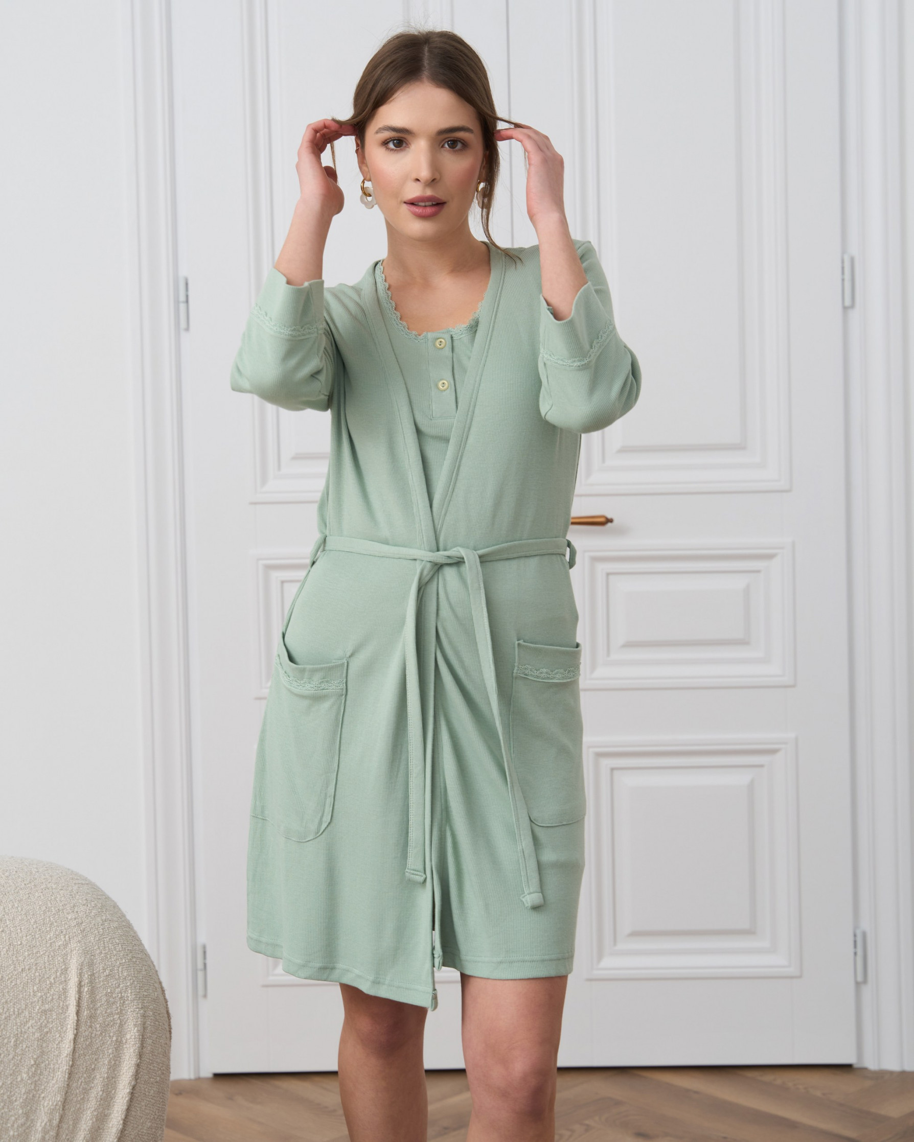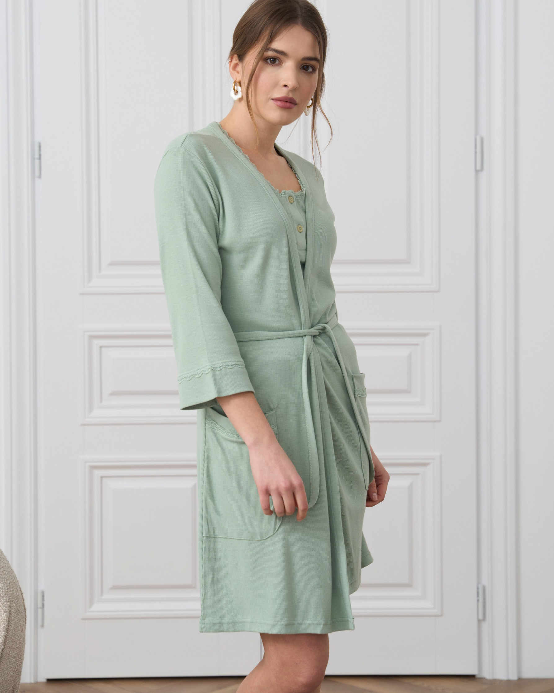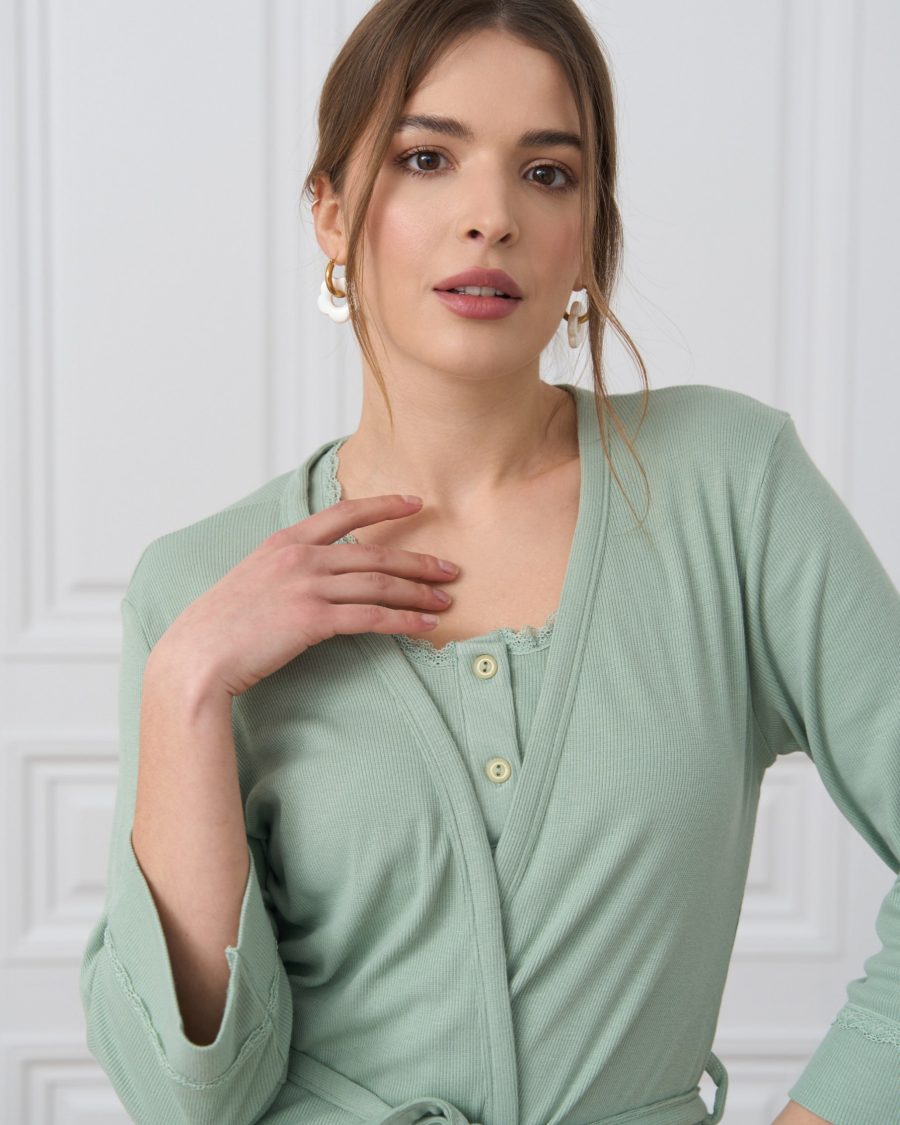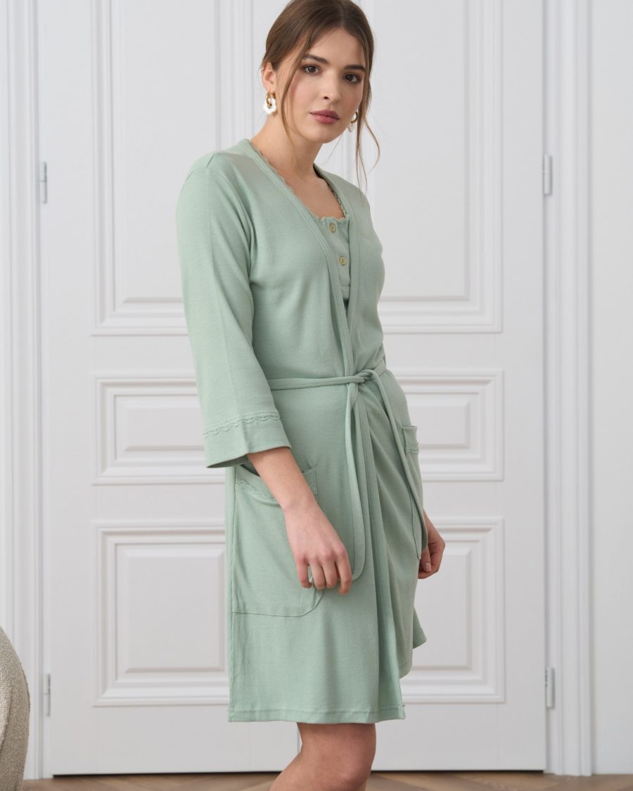 Baby Doll με ώμο και σορτς συνδυασμένο με ρόμπα που έχει μανίκι 3/4